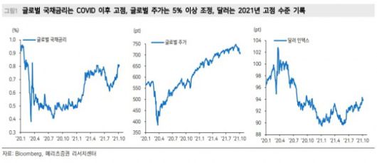 윤 연구원은 "단기간 글로벌 금융시장은 단순하게 인플레이션과 정책에 대한 의심을 거두기 쉽지 않을 것"이라며 "그동안 주식과 채권 공히 정책의 수혜를 본 만큼 민간경제 스스로 자신감이 확보되기 전까지 유동성 중단의 금단현상을 극복해야 한다"고 제시했다.