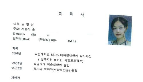 또한 2003년 국민대 테크노디자인대학원 박사과정 재학 중 BK21 사업에도 참여했다고 썼다.
