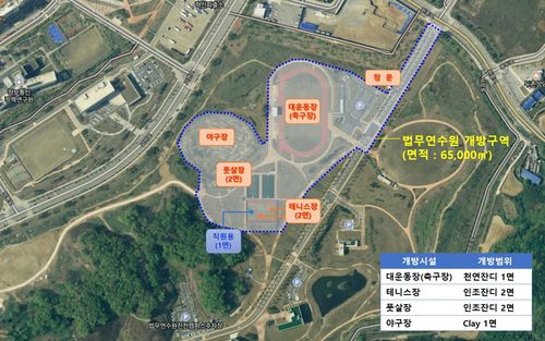 7일 진천군에 따르면 법무연수원 축구장, 테니스장, 풋살장, 야구장 등 체육시설을 주말·휴일 오전 9시부터 오후 5시까지 개방한다.