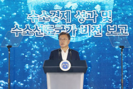 문 대통령은 “수소경제 활성화 로드맵 발표 후 짧은 기간 동안 세계가 주목할 성과를 거둔 것은 튼튼한 산업 역량과 함께 우리 기업과 국민의 노력이 있었기에 가능했다”며 “수소 선도국가로 나아가기 위한 모두의 의지를 결집해 2050년 탄소 중립 이행을 위한 탄소 저감 수단으로서 수소경제가 더 중요해진 만큼 정부는 기업의 든든한 동반자로서 지원 노력을 아끼지 않겠다”고 말했다.