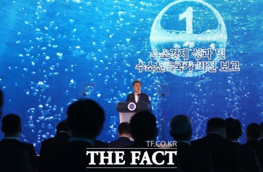 문 대통령은 이어 △2019년 1월 '수소경제 활성화 로드맵' 발표 △세계 최초 '수소법' 제정 및 범정부 수소경제위원회 출범을 통한 수소 지원체계 확립 △수소 관련 예산 대폭 확대(취임 초 750억→2022년 1조3000억) 등 수소 선도국가를 위한 정부의 노력과 성과를 직접 설명했다.