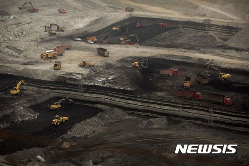 【어얼둬쓰(중국 네이멍구자치구)=AP/뉴시스】중국 네이멍구자치구 어얼둬쓰( 鄂爾多斯)의 한 노천광산에서 지난 2015 11월4일 작업 차량들이 분주하게 움직이고 있다. 2017.06.26 |