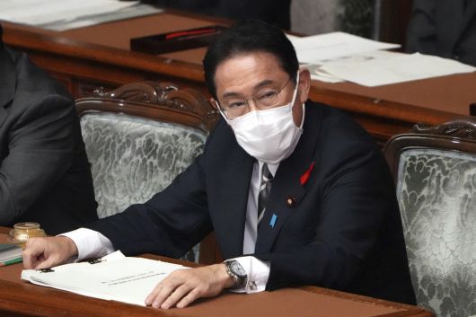 기시다 후미오(岸田文雄) 신임 일본 총리가 8일 취임 후 첫 국회 연설에 앞서 도쿄(東京) 국회에 앉아 있다. [AFP] |