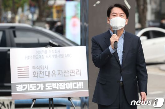 (서울=뉴스1) 국회사진취재단 = 안철수 국민의당 대표가 11일 오후 서울 마포구 홍대 어울마당로 광장에서 열린 화천대유 대장동게이트 특검 촉구 청년 버스킹에 참석해 발언을 하고 있다. 2021.10.11/뉴스1