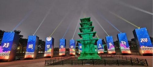 (서울=연합뉴스) 정윤주 기자 = LG유플러스[032640]는 부여 정림사지에서 열리는 문화재 야행(夜行) '사비, 빛의 화원' 행사에서 28㎓ 대역 5G 실감형 서비스를 선보인다고 12일 밝혔다.
