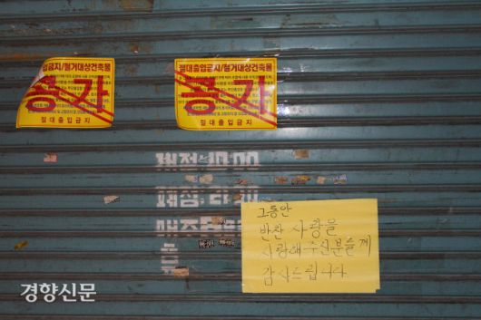 폐점을 알리는 문구를 붙인 한 점포. 경향신문 자료사진 |