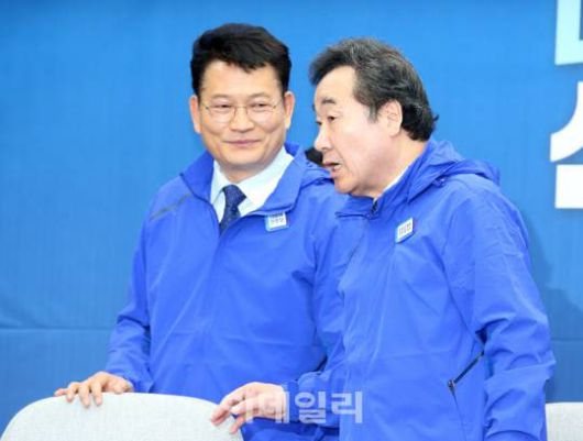 지난해 2월 20일 당시 더불어민주당의 이낙연 상임선대위원장(오른쪽)과 송영길 공동선대위원장이 서울 영등포구 여의도 국회에서 열린 ‘더불어민주당 선거대책위원회(선대위) 제1차 회의’에서 이야기를 나누고 있다 (사진=이데일리DB) |