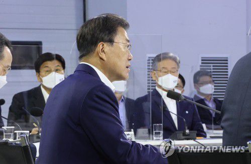 발언이 이어지는 동안 이 지사는 문 대통령에게 시선을 고정한 채 이따금 고개를 끄덕이며 호응하는 모습을 보였다.