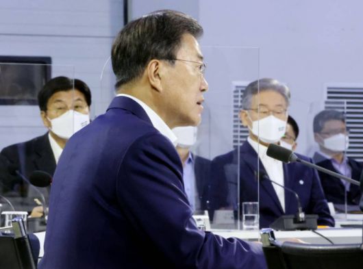 이날 자리엔 이 지사를 비롯해 오세훈 서울시장 외 시도지사들(경상남도·제주특별자치도는 권한대행)이 모두 모였다. 서울시에서는 류훈 서울시 행정2부시장이 자리했다.