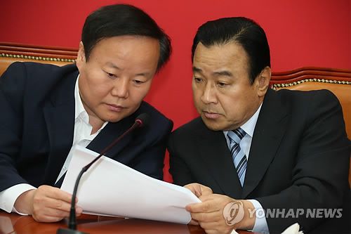 김재원 원내수석부대표와 이완구 원내대표 |