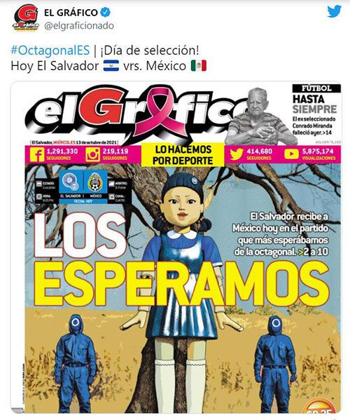 이와 함께 전날 멕시코와 엘살바도르의 2022 카타르월드컵 북중미 예선경기를 앞두고 홈팀 엘살바도르 신문 1면에 '오징어 게임' 속 이미지가 등장하기도 했습니다.