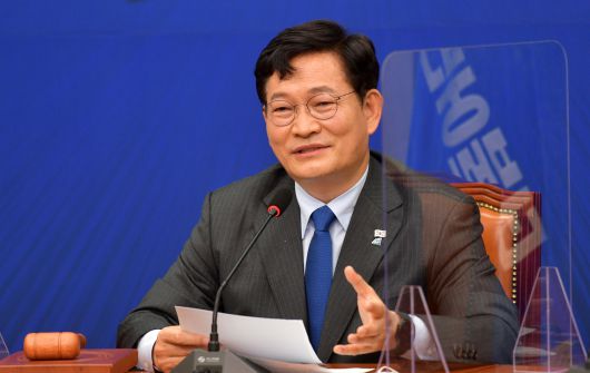 송영길 더불어민주당 대표가 15일 국회에서 열린 최고위원회의에 참석, 모두발언을 하고 있다. /국회사진기자단 |