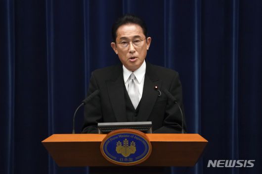 [도쿄(일본)=AP/뉴시스]지난 4일 기시다 후미오 일본 총리가 도쿄 총리 관저에서 취임 후 첫 기자회견을 가지고 있다. 221.10.15. |