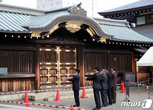 야스쿠니 신사에 참배하고 있는 사람들. © 로이터=뉴스1 |