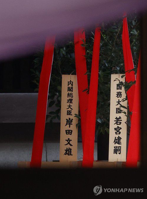 기시다 총리는 이날 취임 후 처음 맞는 야스쿠니신사의 추계 예대제(例大祭·제사)에 '내각총리대신 기시다 후미오' 명의로 공물을 봉납했다.