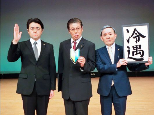 아베가 건강 악화로 사퇴한 뒤에도 더뉴스페이퍼의 풍자는 이어졌다. 지난 1년간 스가 요시히데 전 총리 역할을 맡은 야마모토 텐신(59)은 정권의 불성실함과 기만을 웃음으로 승화시켰다는 평가를 받는다. 불리한 질문이 나올 때마다 입력한 것 마냥 같은 대답으로 일관하면서다. 코로나 관련 질문에도, 올림픽 질문에도 야마모토의 대답은 한결같았다. “안전하고 안심되는 올림픽을 개최하겠다”는 것. 기자회견 때 원고를 보고 읽기만 한다는 비판을 받는 데 대해선 “총리를 그만두고 시간도 있고, 자민당에서도 푸대접받고 있으니 이제 말하기 학원이라도 다니려 한다”고 답하기도 했다.