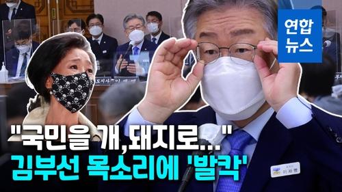 (서울=연합뉴스) 더불어민주당 이재명 대선후보를 상대로 '대장동 의혹' 등을 질의하는 18일 국회 행정안전위원회의 경기도 국정감사에서 배우 김부선 씨의 목소리가 흘러나왔습니다.