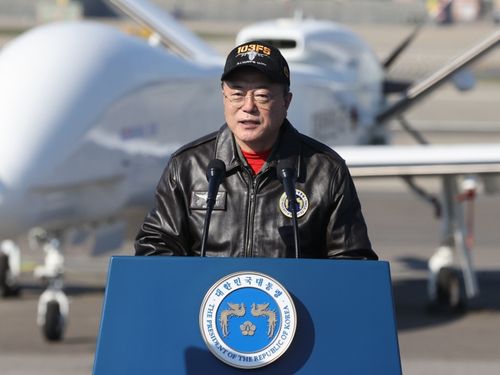 문 대통령은 이날 성남 서울공항에서 열린 2021 서울 국제 항공우주 및 방위산업 전시회(ADEX) 개막식에서 한 축사에서 "한국은 첨단과학기술 기반의 스마트 강군을 지향해 세계와 함께 평화를 만들어 갈 것"이라며 이같이 밝혔다.