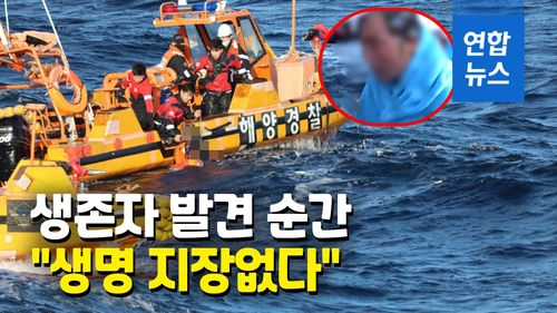 구조대원들은 "입수자 발견"이라고 외치며 망망대해에 주황색 구명조끼를 입고 표류하던 A씨를 물 밖으로 끌어내 보트에 태웠습니다.