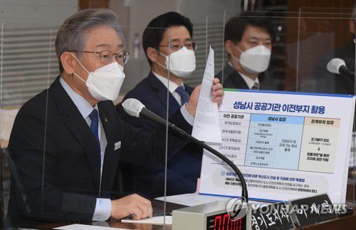 (서울=연합뉴스) 고동욱 기자 = 더불어민주당 이재명 대선 후보는 21일 "대장동 개발과 관련해 구속될 사람은 민간개발 압력을 뿌리치고 절반이나마 공공 개발한 이재명이 아니라 대출비리범을 비호한 (국민의힘) 윤석열 후보"라고 주장했다.