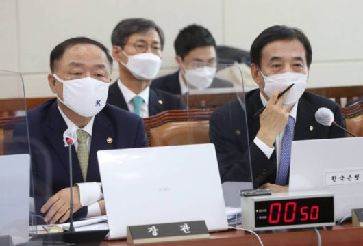 [서울=뉴시스] 전신 기자 = 이주열 한국은행 총재가 21일 서울 여의도 국회에서 열린 기획재정위원회의 기획재정부, 한국은행 등에 대한 종합감사에서 의원 질의에 답변하고 있다. (공동취재사진) 2021.10.21. |