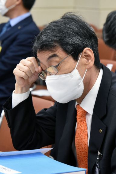 이동걸 KDB산업은행 회장이 21일 국회에서 열린 국회 정무위원회의 금융위원회 등에 대한 국정감사에 출석, 심각한 표정으로 자료를 확인하고 있다./윤동주 기자 doso7@ |