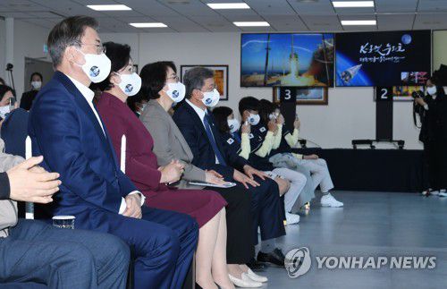 문 대통령은 "발사체를 우주 700㎞ 고도까지 올려보낸 것만으로도 대단한 일이며 우주에 가까이 다가간 것"이라고 평가했다.