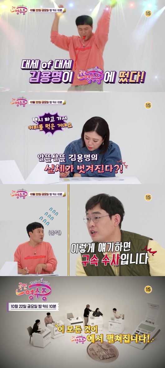 22일 밤 9시 10분 방송되는 KBS Joy 예능 프로그램 '국민 영수증' 7회에서는 개그맨 김용명의 영수증을 분석하는 3MC 송은이, 김숙, 박영진의 모습이 전파를 탄다.