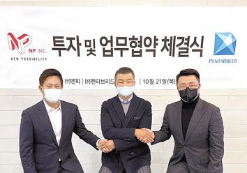 XR(혼합 현실) 콘텐츠 기업 엔피가 디지털 마케팅 대행사 펜타브리드를 인수했다. 송방호(왼쪽부터)엔피 대표, 박태희 펜타브리드 대표, 박상준 엔피 대표. |