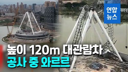 (서울=연합뉴스) 중국에서 건설 중이던 높이 약 120m짜리 대형 관람차가 무너졌습니다.