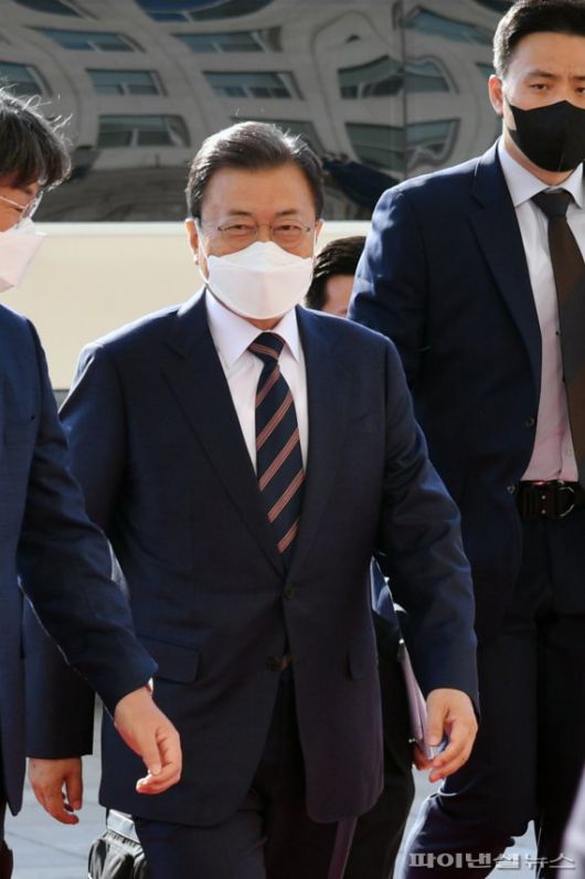 문재인 대통령이 2022년도 예산안 시정연설을 위해 25일 서울 여의도 국회에 도착하고 있다. 사진=서동일 기자