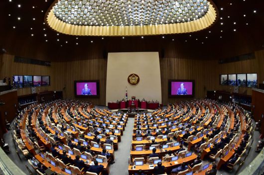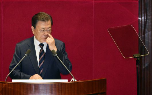 문재인 대통령이 시정연설을 마친 후 본회의장을 나서고 있다. |