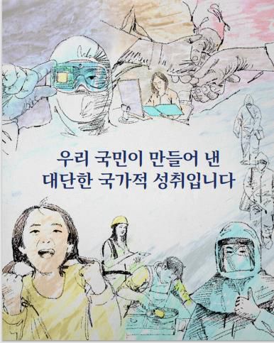 문 대통령은 연설에서 "유엔무역개발회의가 만장일치로 결정했듯이 우리나라가 명실공히 세계가 인정하는 선진국이 됐다. 우리 국민이 만들어 낸 대단한 국가적 성취"라고 말하는 부분에서는 반도체 기술자부터 어린아이까지 다양한 국민의 모습을 그린 삽화로 감성을 자극하기도 했다.