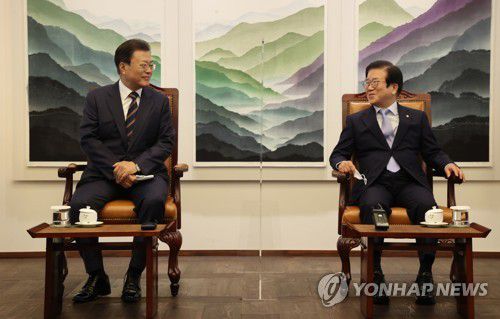 앞서 공개 모두발언에서는 문 대통령과 박병석 국회의장이 덕담을 주고받았다.