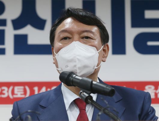 국민의힘 윤석열 대선 경선 후보가 23일 오후 울산시당 이전 개소식에 참석해 발언하고 있다. [연합] |