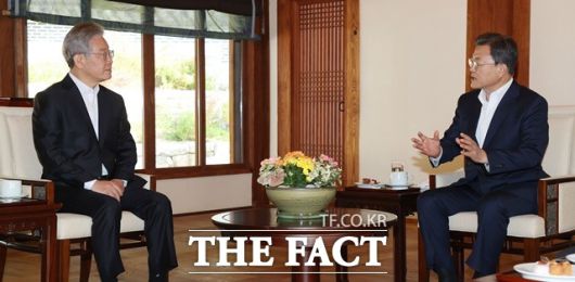 [더팩트ㅣ허주열 기자] 문재인 대통령이 26일 오전 이재명 더불어민주당 대선 후보를 청와대로 초청해 대화를 나눴다. 이 후보가 민주당 대선 후보로 선출된 지 16일 만에 이뤄진 이번 만남은 화기애애한 분위기에서 약 50분간 차담회 형식으로 진행됐다.
