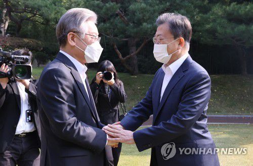 차담 나누는 문재인 대통령과 민주당 이재명 대선 후보 |