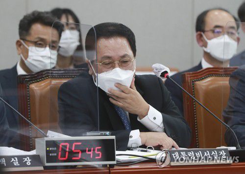 김승원 의원은 고발 사주 의혹을 거론하며 "검찰이 선거(작년 총선)에 영향을 미칠 목적으로 고발장을 접수하게 해서 졸속으로 수사했다"며 "이 국기문란 사건을 청와대에서 자체 조사할 생각이 있느냐"고 유 실장에게 묻기도 했다.