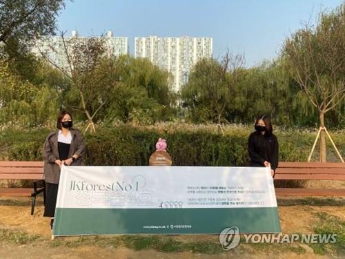 ▲ 서울환경운동연합은 방탄소년단(BTS) 멤버 정국 팬 300여명과 함께 정국의 25번째 생일을 맞아 이촌 한강공원 한강철교 부근에서 '정국 숲 4호'를 조성했다고 27일 밝혔다. 이번 숲 조성은 악화하는 환경을 되살리고 미래 세대에게 아름다운 지구를 전하고자 팽나무 3그루와 조팝나무 600그루를 심는 방식으로 진행됐다. (서울=연합뉴스)