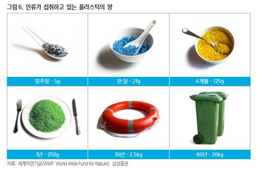 2008년 태국 파통의 한 해변에서 2m 크기의 쇠항고래 한 마리가 죽은 채 발견됐다. 뱃속이 비닐 봉지로 가득차 굶어 죽은 상태로 확인되면서 전세계에 플라스틱으로 인한 생태계 파괴에 경종을 울린 사건이다. 플라스틱은 나무ㆍ종이ㆍ쇠 등 기존 소재 자리를 꾀어차면서 급속도로 생산ㆍ소비량이 증가하고 있다. 전세계적으로 플라스틱 생산량은 1950년 200만t에서 2000년 2억1000만t으로 50년새 100배 이상 급증했고 지난해에는 4억6000만t에 이른다. 지난 70여년간 무려 231배나 성장했다.
