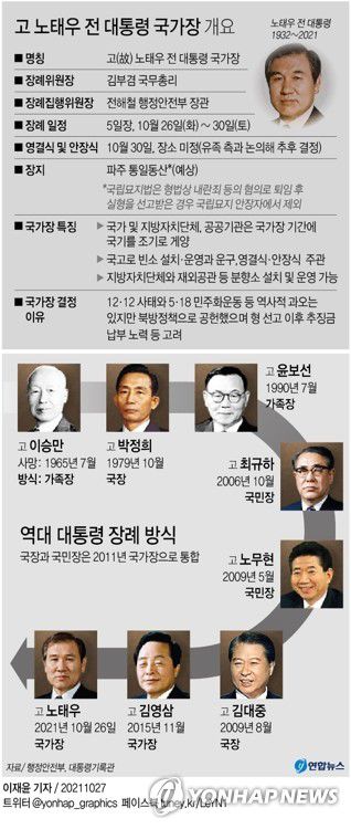 (서울=연합뉴스) 김병규 김기훈 기자 = 노태우 전 대통령 장례가 닷새간 국가장으로 치러진다. 장례를 주관하는 장례위원장을 김부겸 국무총리가 맡는다.