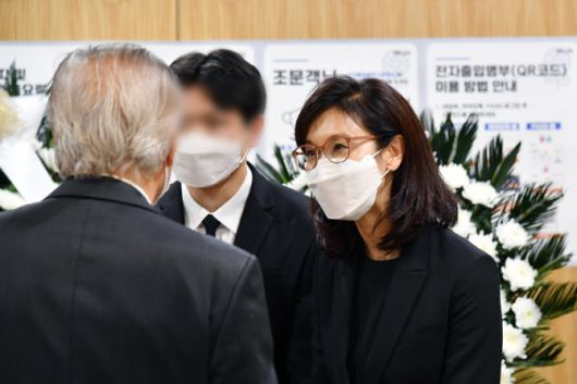 노태우 전 대통령의 장녀 노소영 아트센터 나비 관장이 27일 노 전 대통령의 빈소가 마련된 서울대병원 장례식장에서 조문객을 맞이하고 있다 (사진공동취재단) |