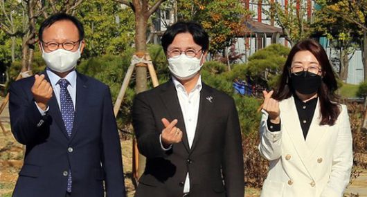 포스코에너지(사장 정기섭·사진 왼쪽)는 27일 인천서구청(청장 이재현·가운데), 어린이재단 인천지부(지부장 신정원·오른쪽)와 함께 인천시 서구 청라국제도시에 위치한 문점공원에서 ‘미세먼지 저감 2호 숲 조성’ 기념행사를 개최했다.