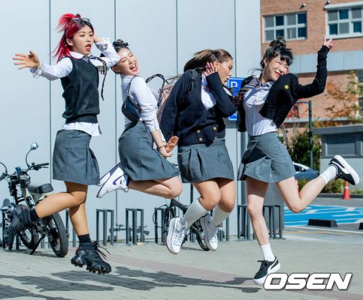 [OSEN=민경훈 기자] 28일 오후 경기도 고양시 일산동구 JTBC 스튜디오에서 '아는형님' 녹화방송이 진행됐다. '스트릿 우먼 파이터'(스우파)에서 아이키, 리정, 가비, 효진초이가 취재진을 향해 포즈를 취하며 날아 오르고 있다. 21.10.28/rumi@osen.co.kr
