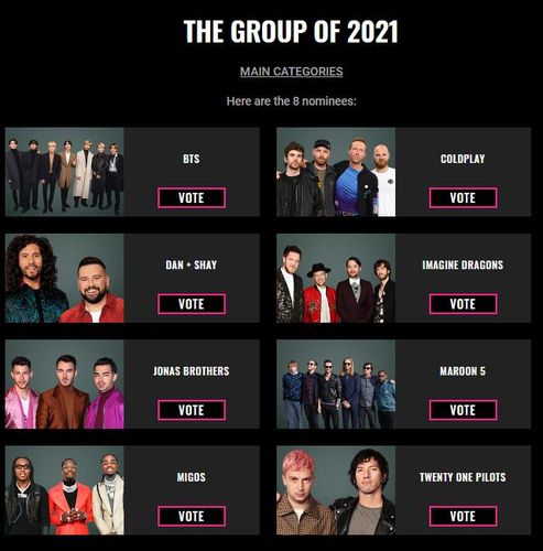미국 '피플스 초이스 어워즈' 올해의 그룹 후보 |