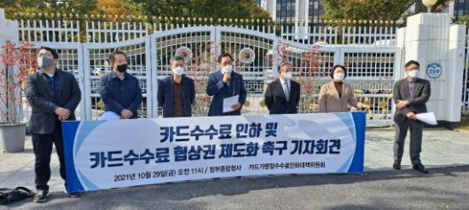 이들은 코로나19 장기화와 함께 과도한 카드수수료가 자영업자에게 큰 고통을 준다며 카드수수료 인하와 카드수수료 협상권 제도화를 촉구했다.