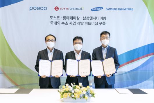 Lotte Chemical Corp., Posco and Samsung Engineering Co. have joined their forces to develop hydrogen business ecosystem to make a contribution toward carbon neutrality.