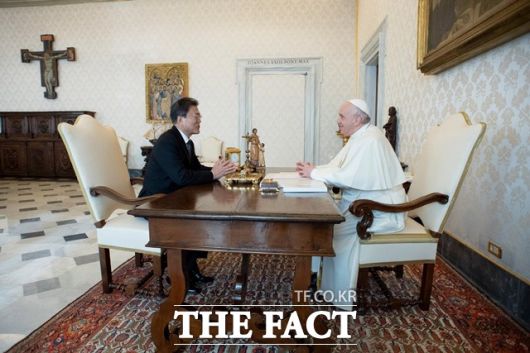 [더팩트ㅣ허주열 기자] 주요 20개국(G20) 정상회의 참석을 위해 이탈리아 로마를 방문한 문재인 대통령이 29일(현지시간) 바티칸시국 교황청에서 프란치스코 교황과 단독으로 면담했다. 청와대는 이 자리에서 문 대통령이 한반도 평화에 대한 교황의 지속적인 지지를 확인했다고 밝혔다.