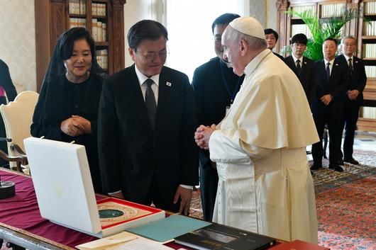 [헤럴드경제]바티칸 교황궁을 공식 방문한 문재인 대통령이 29일 오전(현지시간) 프란치스코 교황에게 방북을 공식 제안했다.