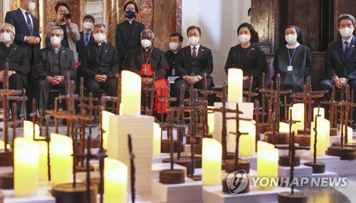 특히 문 대통령 부부는 한국과 이탈리아의 복사 어린이(미사를 도와주는 역할을 하는 어린이)들로부터 촛불을 건네받아 한반도를 형상화한 전시작품의 마지막 점등을 하기도 했다.